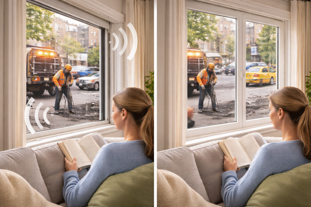 Effective window noise reduction relies on disrupting sound waves as they travel. When sound hits glass, it vibrates and transfers energy indoors. Multi-layered designs help by: